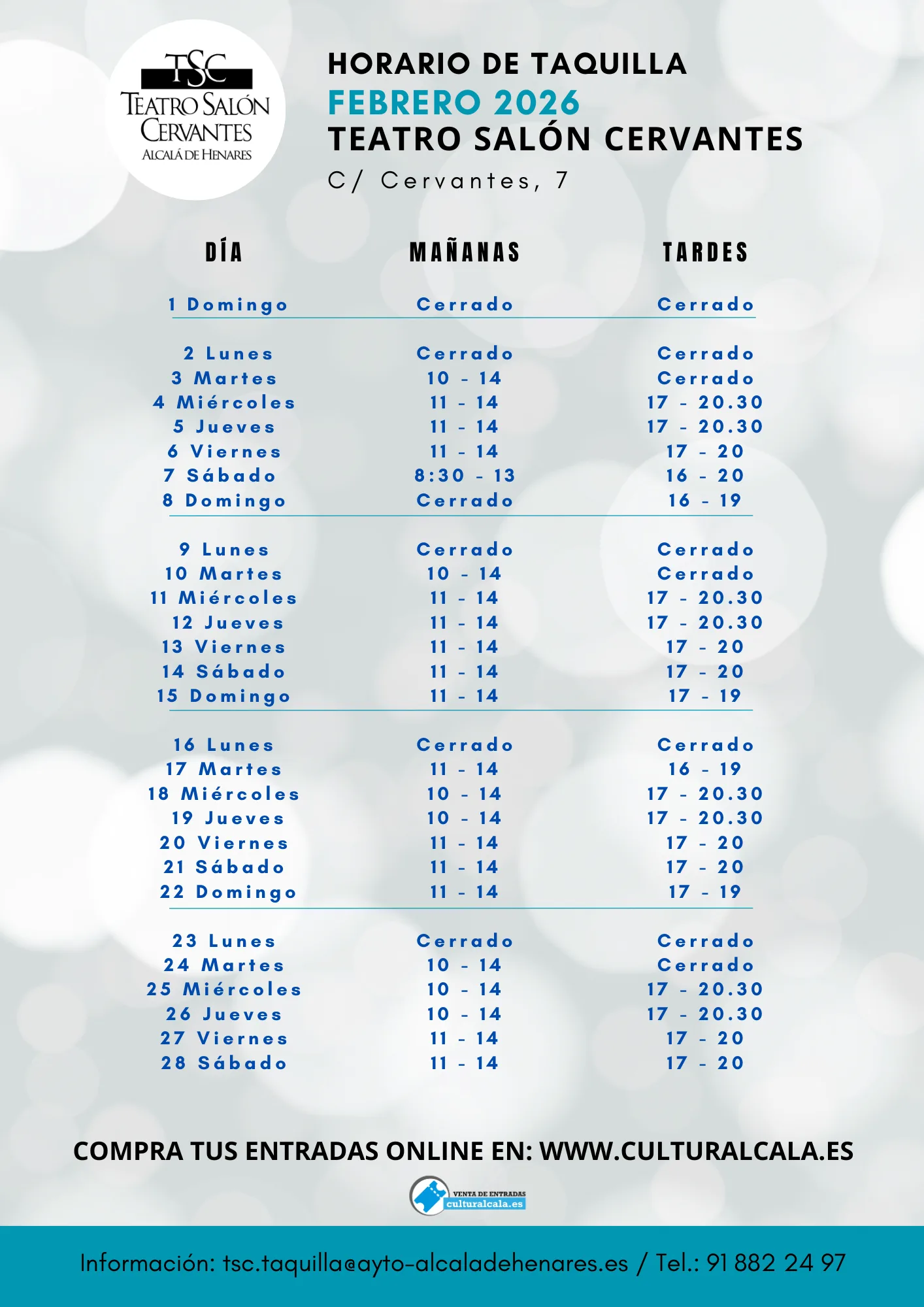 DESCARGA AQUÍ EL PDF CON LA INFORMACIÓN CONVOCATORIA ALCALÁ A ESCENA 2026 La Concejalía de Cultura del Ayuntamiento de Alcalá de Henares abre el plazo para la presentación de propuestas dirigidas al programa ALCALÁ A ESCENA, dirigido al fomento y la promoción de artistas y entidades locales, facilitando el acceso de sus estrenos absolutos a … Leer más