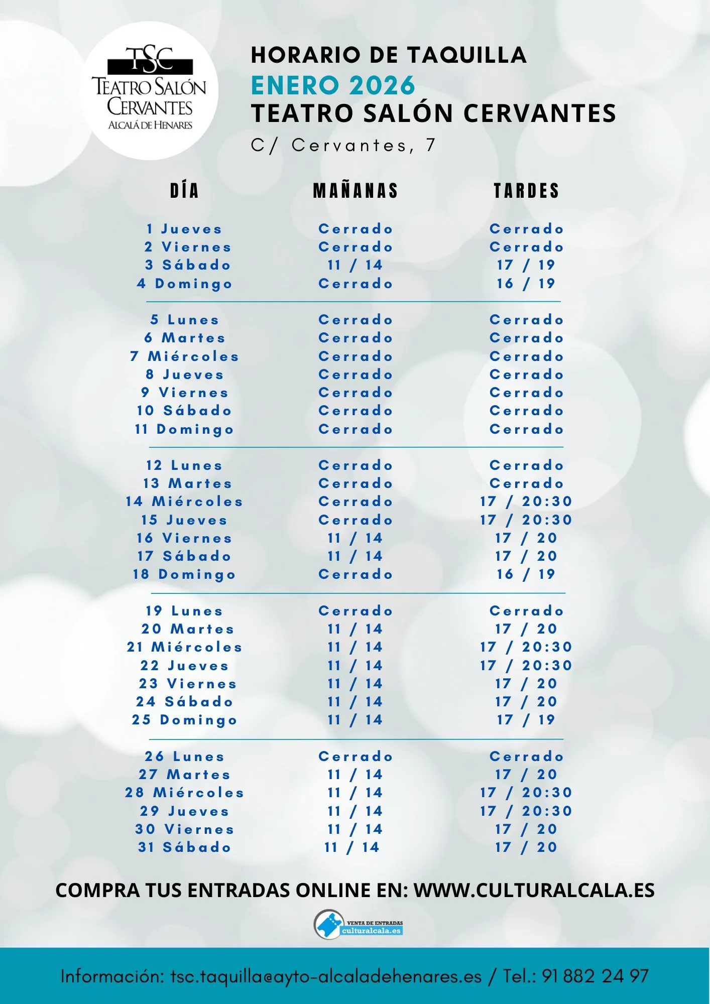 24, 25 y 31 de diciembre y 1 de enero cerrado